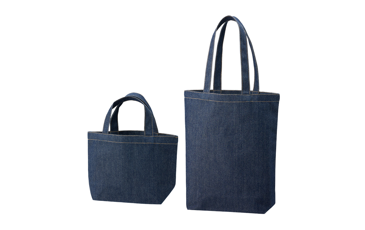 シックなインディゴカラーにベージュのステッチをほどこしたファッショナブルなデニムシリーズです。 13オンスでタフなところもポイント! 定番の舟形デザインで使いやすい人気のデニムトートバッグです。S・Mの2サイズ展開。 単色印刷はもちろん、フルカラー印刷も可能なためオリジナルロゴやキャラクターを入れた物販品としてもご提案いただけます。