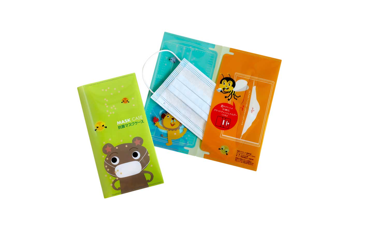 マスクの収納ケース。エチケットになりつつあるマスクは出かけ先で外すことも。マスクケースにしまっておけば不快感もクリアに。ケースとマスクをセットにしての広告としての配り物にも最適です。花粉や風邪の季節、エチケットにもありがたいノベルティです。4タイプよりお選びいただけます。