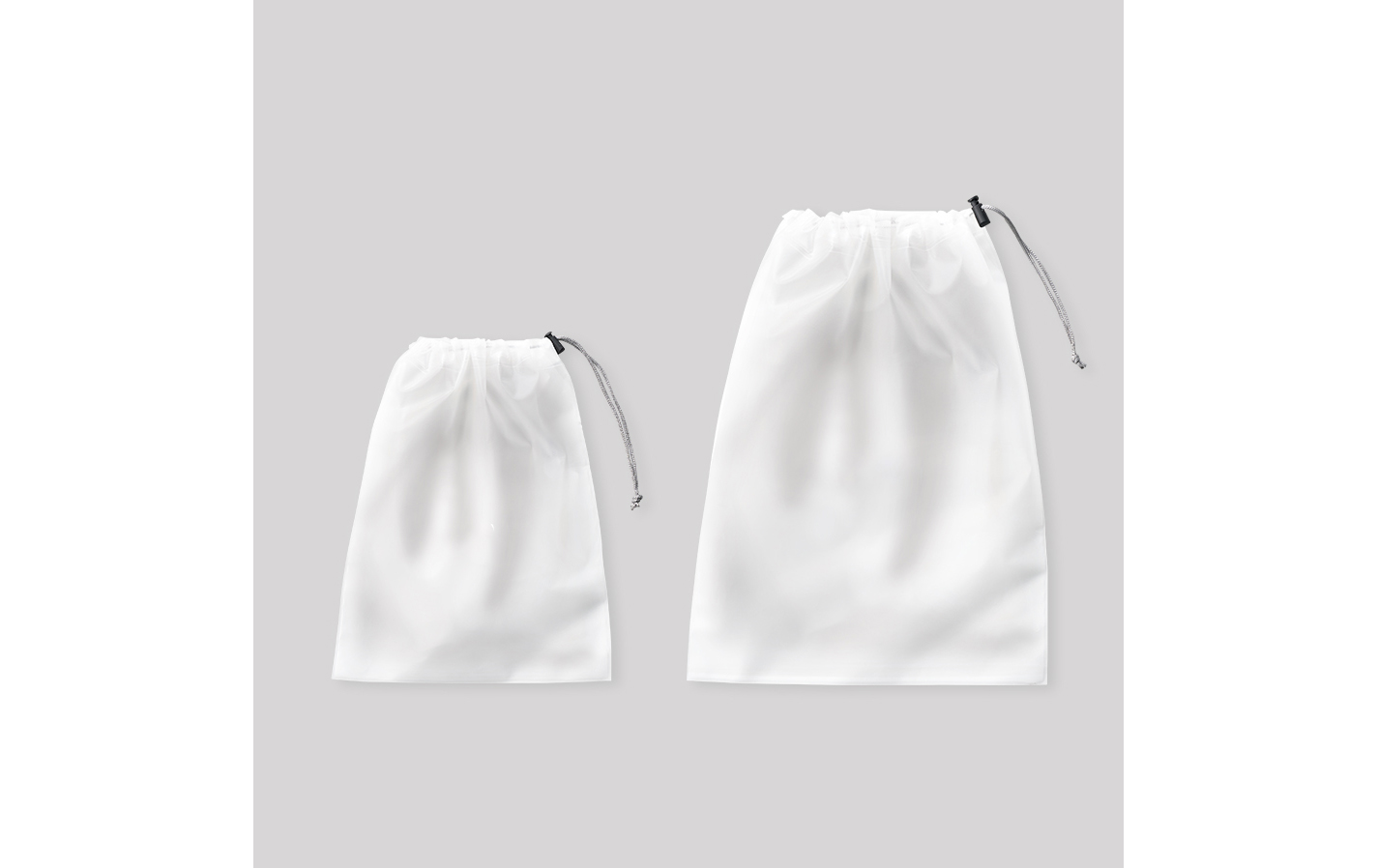 半透明なので中身が分かりやすいEVA素材の巾着です。 横絞りになっており、ストッパー付きでしっかりと留めることができるので、ものを安心していれていただけます。 水や紫外線にも強く、中身が外からでもわかりやすいため 普段使いのほか、レジャーやトラベル時にも大活躍するアイテムです。