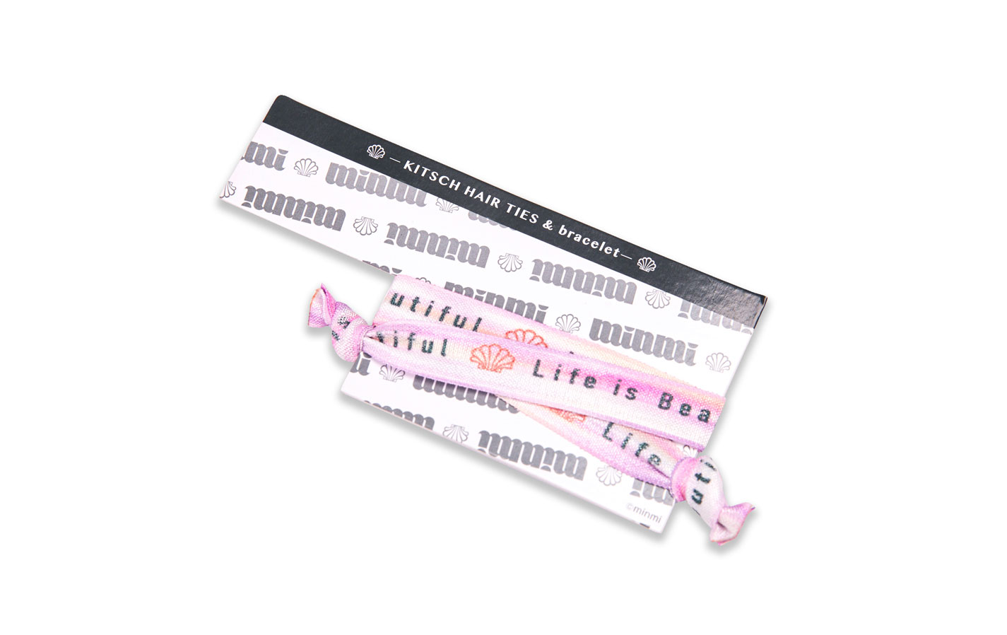 ラバー・シリコンバンド同様にコンサート・ライブなどで人気のキッチュ。2・3本を柄違いでセットして販売しても。フルカラープリント可能です。台紙はオリジナル柄で手配できます。キッチュのサイズはヘアゴムサイズのものとブレスレットサイズどちらも取り扱いしております。 オリジナルヘアゴムをお探しの方はこちらでご紹介しております。