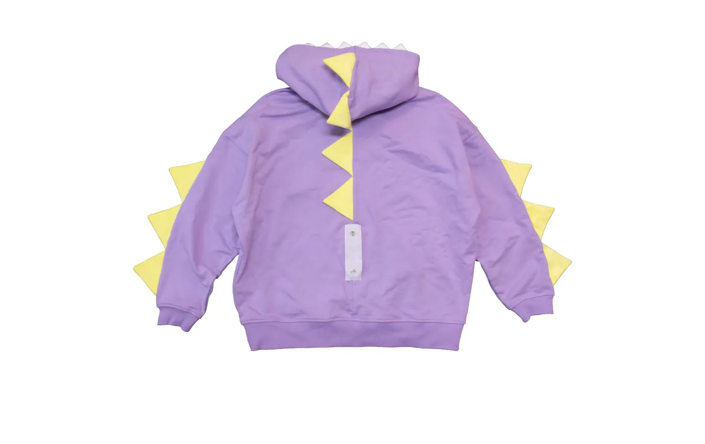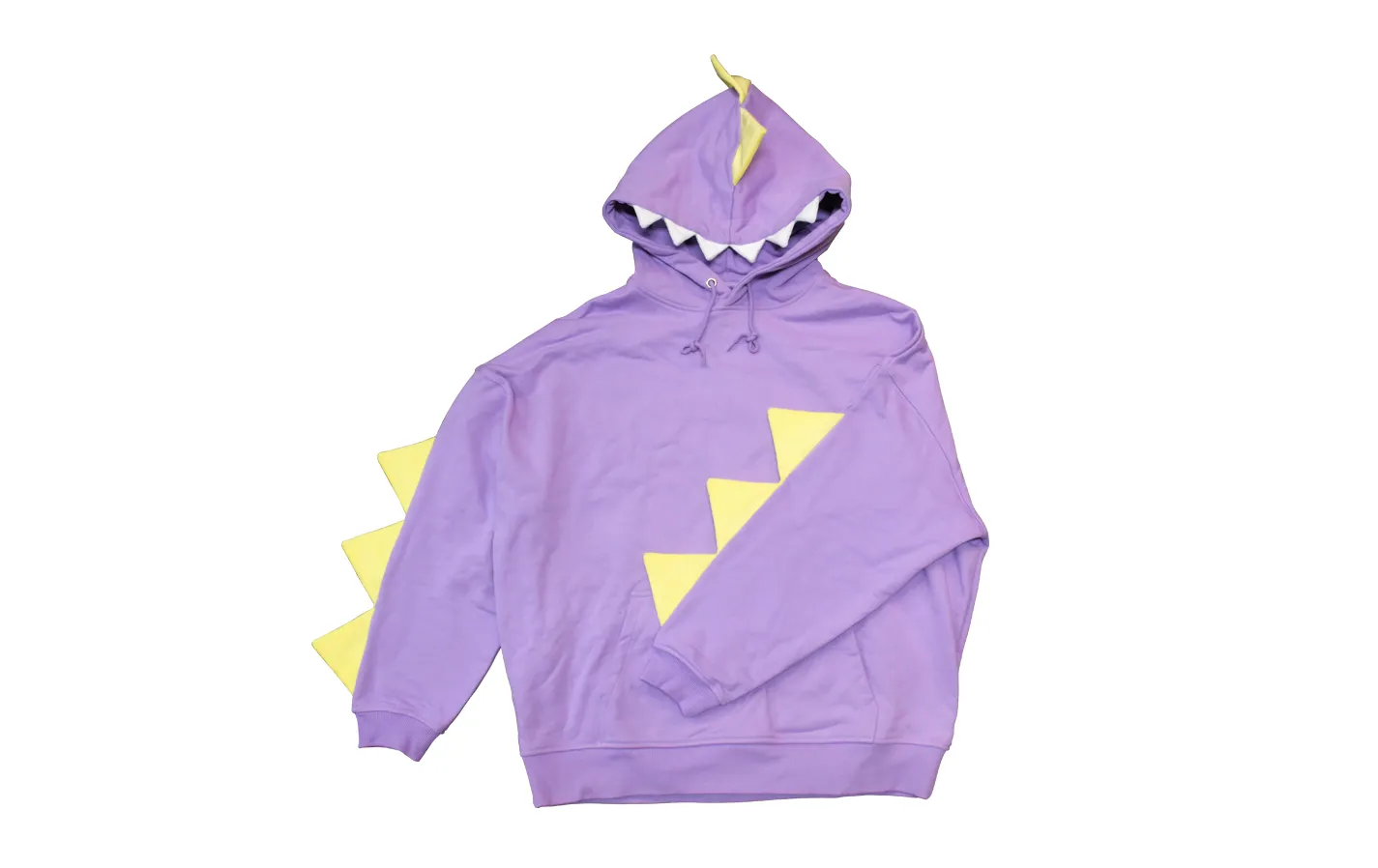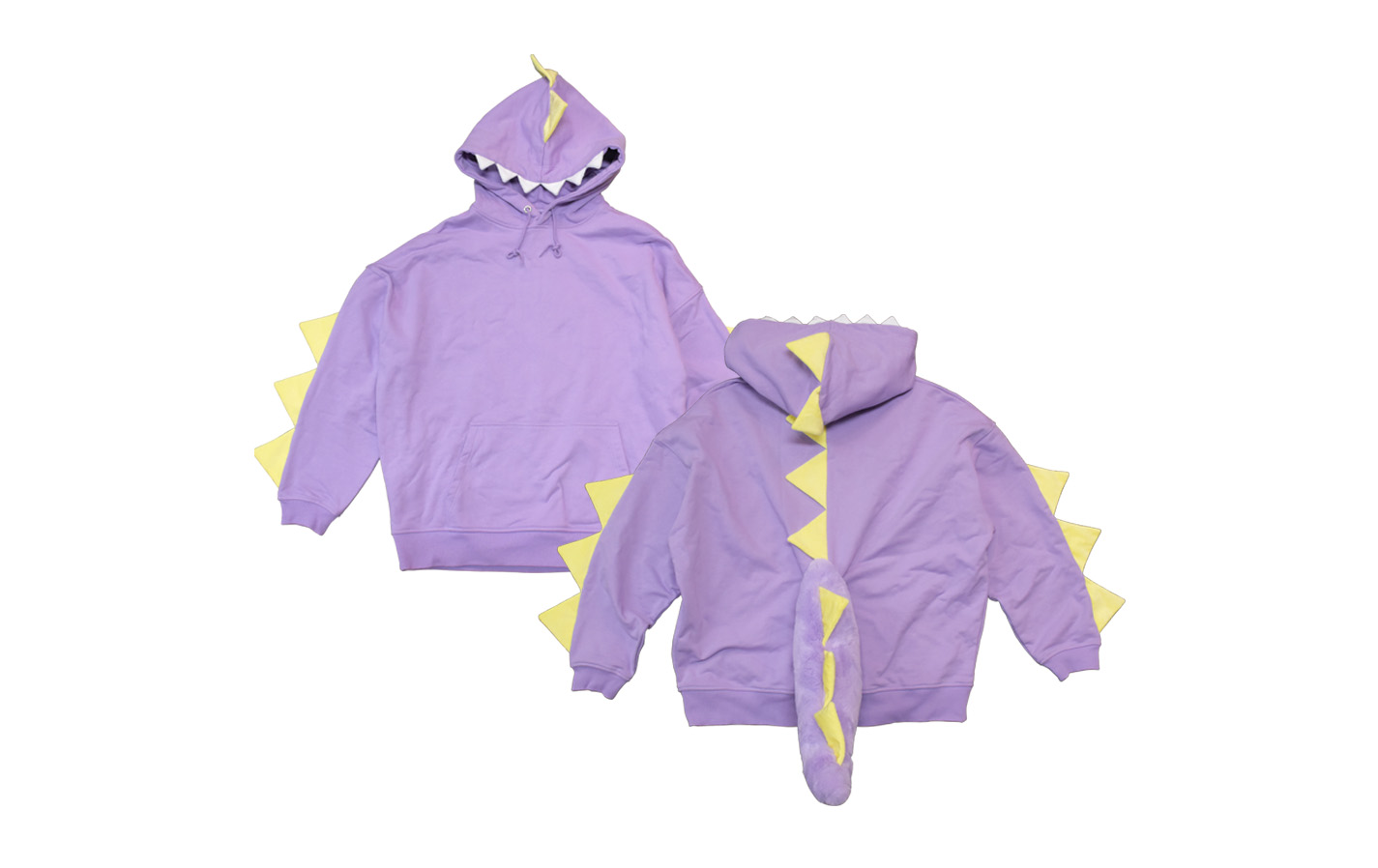 フードの牙や立体的なトゲが目を引く、インパクト抜群の恐竜パーカー。