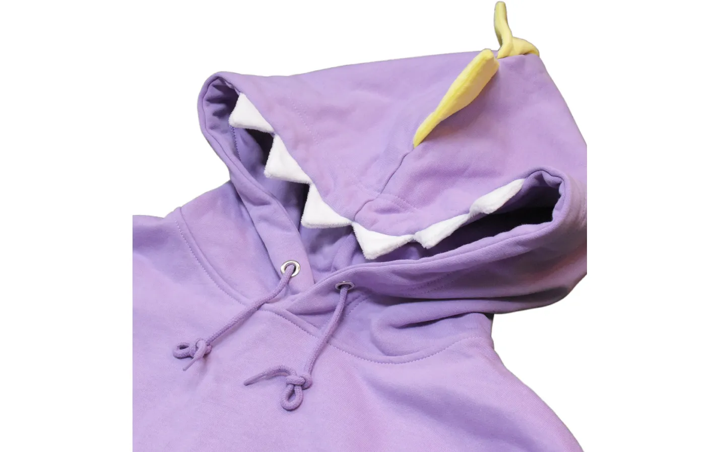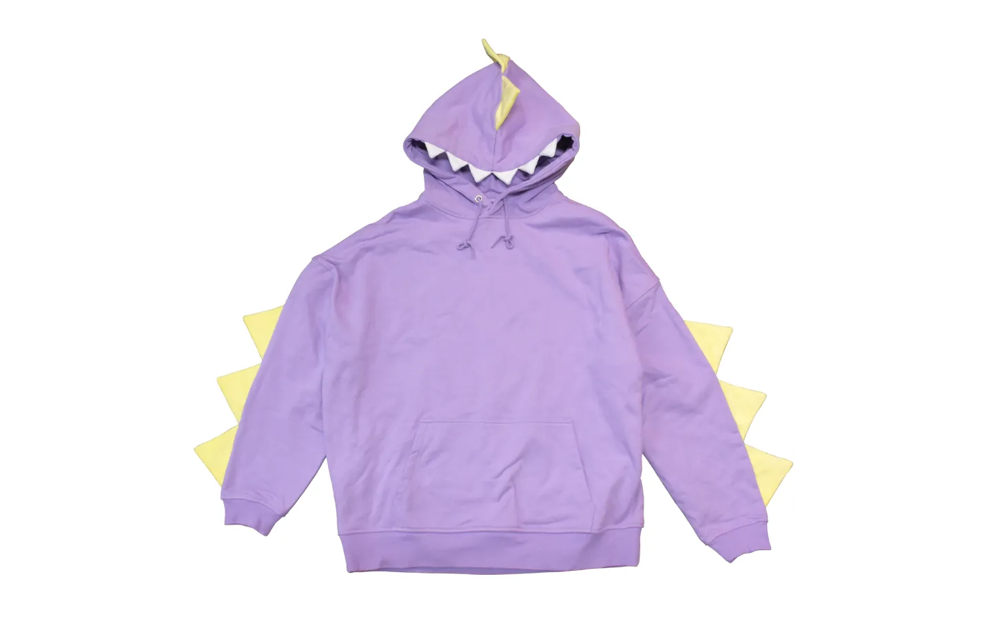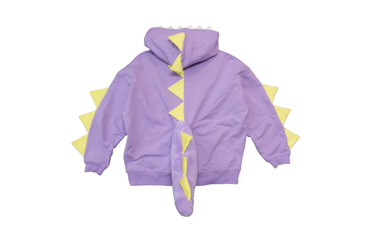 フードの牙や立体的なトゲが目を引く、インパクト抜群の恐竜パーカー。