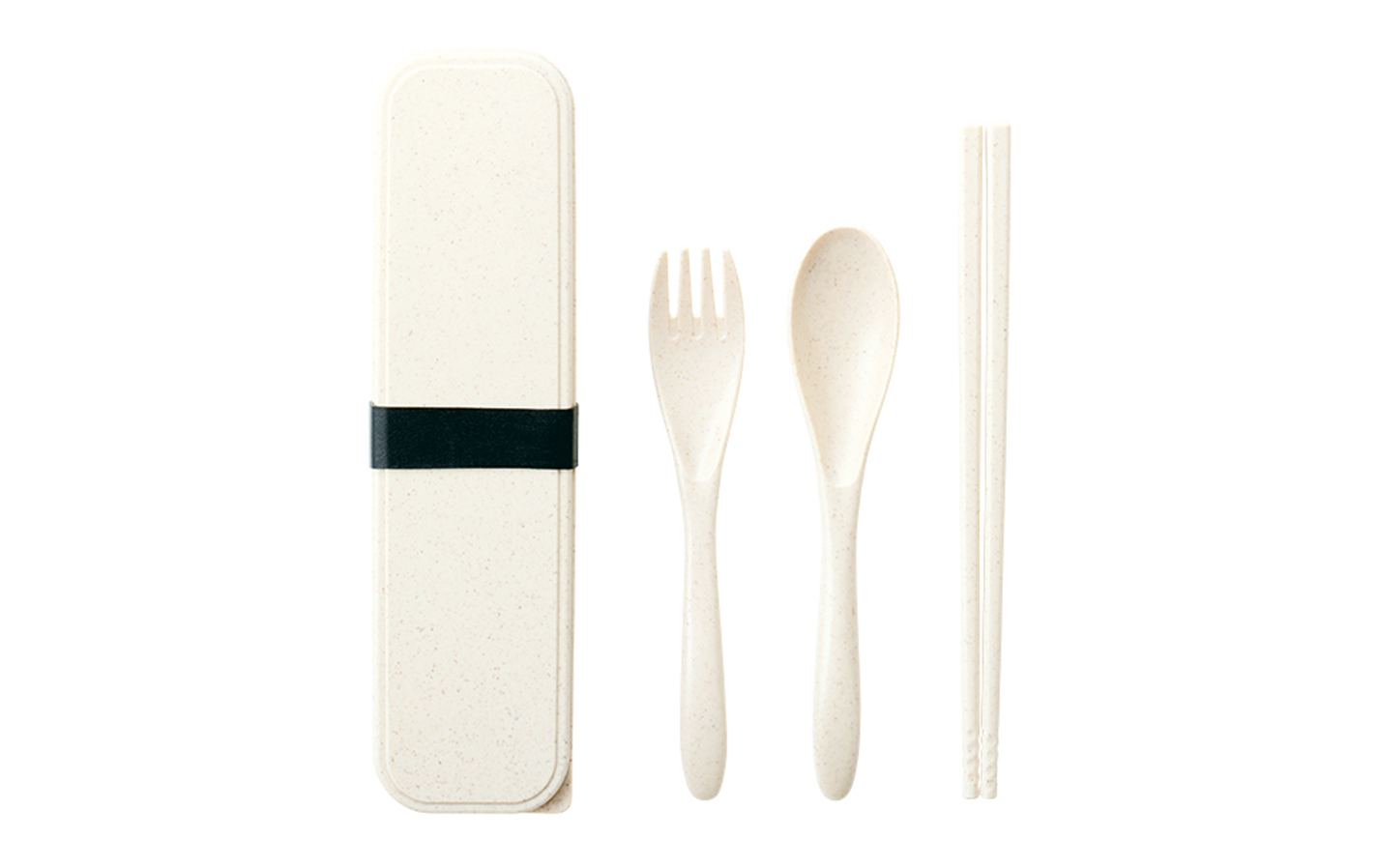 環境にやさしい竹繊維を使用したバンブーファイバータイプのカトラリーセットです。 スプーン、フォーク、お箸がセットとなっており、繰り返し使用できるのでプラ削減ができるエコ商品です。 ケースがついているのでコンパクトに持ち運びができます。 シリコンバンドがついており、鞄の中でフタが開く心配なく安心して持ち運びができます。 色展開はブラック、ホワイト、ナチュラルの3色展開で女性も男性も使いやすいシンプルなデザインです。 ケースにはシルク印刷が可能となっております。 食料・飲料品メーカー様のノベルティ使用はもちろん、 日常使いするアイテムなのでアーティスト等の物販品としてもおすすめです。 ※バンブーファイバーとは、竹の繊維をパウダー状にして固めたものです。 自然素材の竹を混ぜ込むことで、合成樹脂の使用量を減らした環境に優しいエコの素材です。
