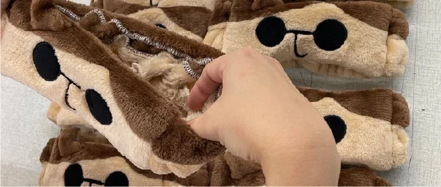 複雑な形状の縫いぐるみ等も、仕様書にあわせて、傷・汚れ・仕様違いを厳しくチェックしています。